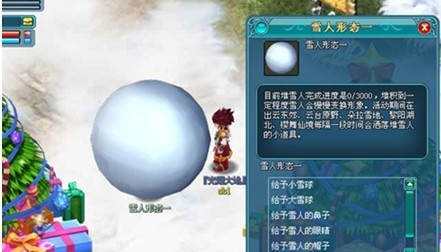 1.活动期间在云台原野、梨阳湖北、仙朵拉城、朵拉雪地、樱舞仙境每隔一段时间会洒落堆雪人的小道具,或者通过战胜圣诞怪物,获得小雪球、大雪球、雪人的鼻子、雪人的眼睛、雪人的帽子。通过东玄城(305.117)找到圣诞活动使者进入堆雪人场地交给正在堆砌中的雪人。