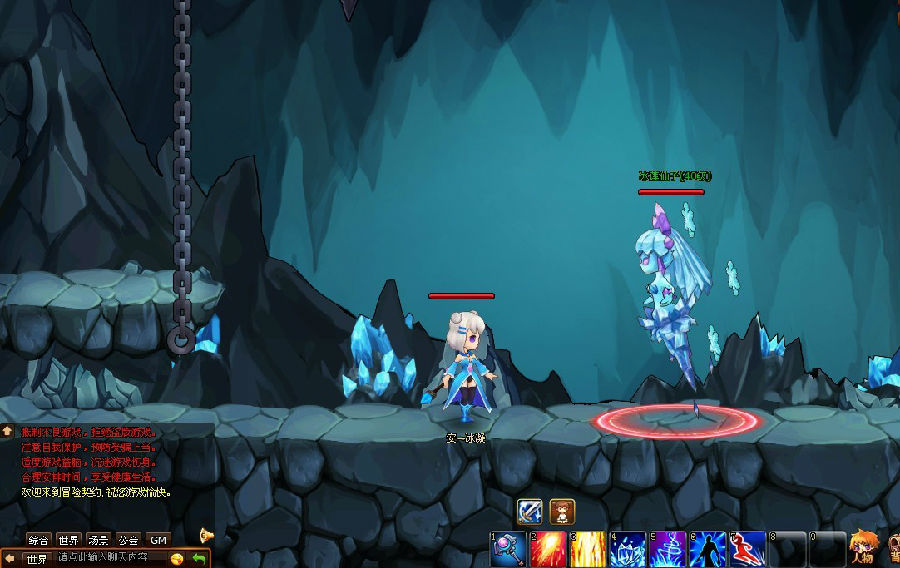 但是冰莲仙子的技能并不是不能躲过的哦~细心的探险者总结出了,当冰莲仙子周身变红时,说明她即将施放大技能了。虽然不能判断她会施放哪个技能,但只要看到技能预警时,跑到地图最左边的铁索处,爬上去就可以避免受击啦!