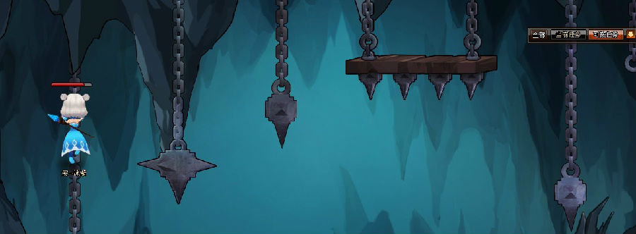 a. 其中有几根铁索非常短,跳得太高会碰到洞顶从而掉下来哦~一定要控制好爬铁索的高度!