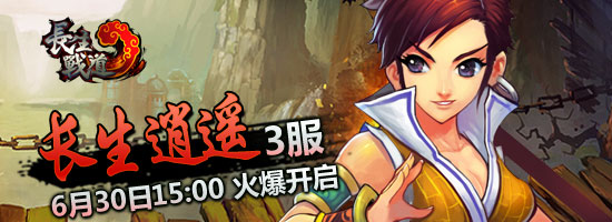 为了让更多的新朋友加入这个具有传奇色彩的长生世界,官方将于2012年6月30日15:00隆重推出长生战道双线3服“长生逍遥” ,期待您的加盟与进驻!另外,在4399长生战道新区开启的同时,我们还为您准备了十大活动,丰厚奖励任你拿!首服十大活动:
