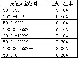 活动内容:活动时间内,单笔充值相应金额可获得高额返还奖励!