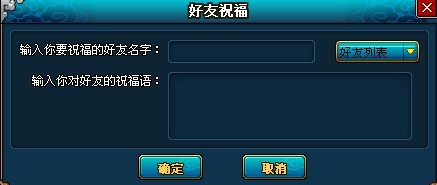 【好友祝福卡】:可以对一个好友进行祝福,双击后可输入你要祝福的好友名字以及祝福语,好友收到祝福后还可以额外获得【好友礼包】;