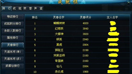 【活动规则】活动时间内,灵兽评分排名前10位的玩家将会获得奖励,以活动截止日的14:00『成就』-『排行』-『灵兽排行』的前10名为准。