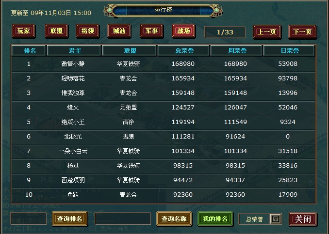 活动三.史诗战场王者争霸(战场荣誉排行榜前10名):