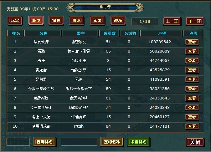 活动四.钢铁联盟宏图霸业(联盟排行榜前10名):