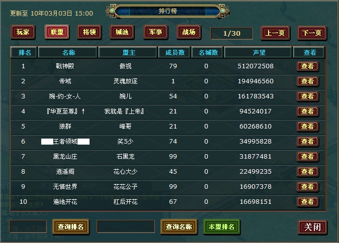 二.钢铁联盟宏图霸业(联盟排名前10):