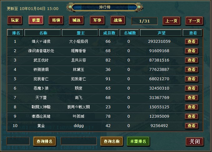 二.钢铁联盟宏图霸业(联盟排名前10):