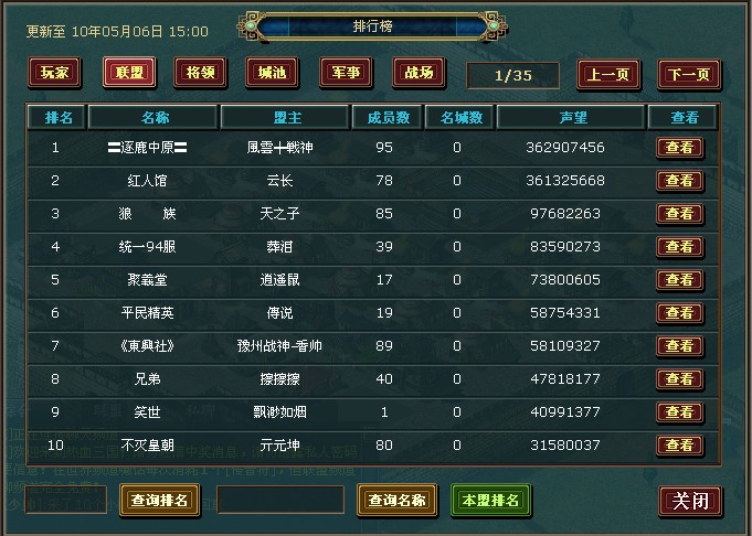 二.钢铁联盟宏图霸业(联盟排名前10):