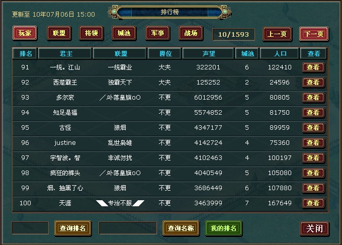 一、新人王者名将相投——排名前100的玩家: