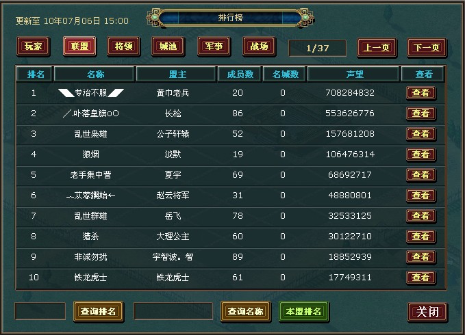 二.联盟排名分享厚礼(联盟排名前10):