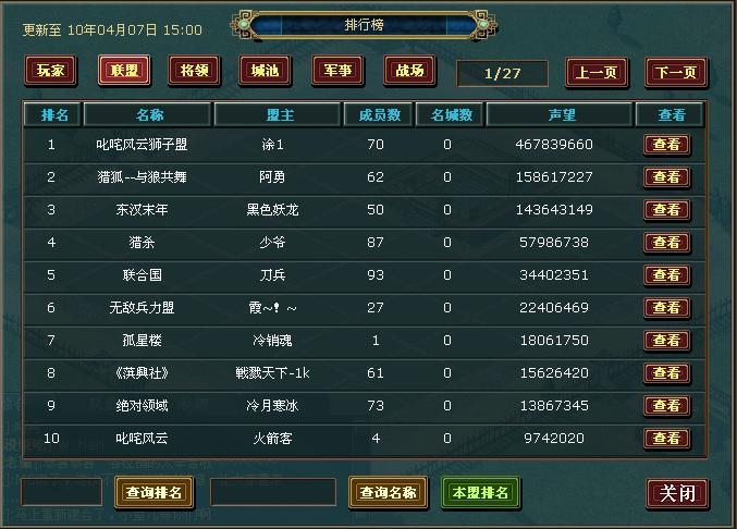 二.钢铁联盟宏图霸业(联盟排名前10):