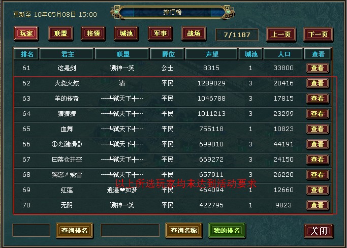 4399热血三国双线96服“凌云之志”新服公士礼包活动已经结束。现在公布各项活动的获奖名单,奖励在48小时之内通过系统信件发送给获奖玩家。