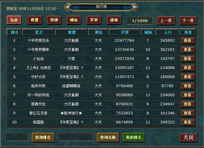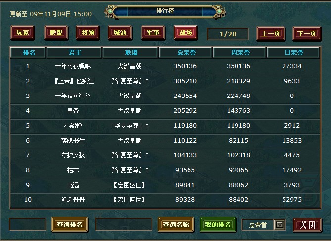 活动一.新人王位先登大戟(玩家排行榜前10名):