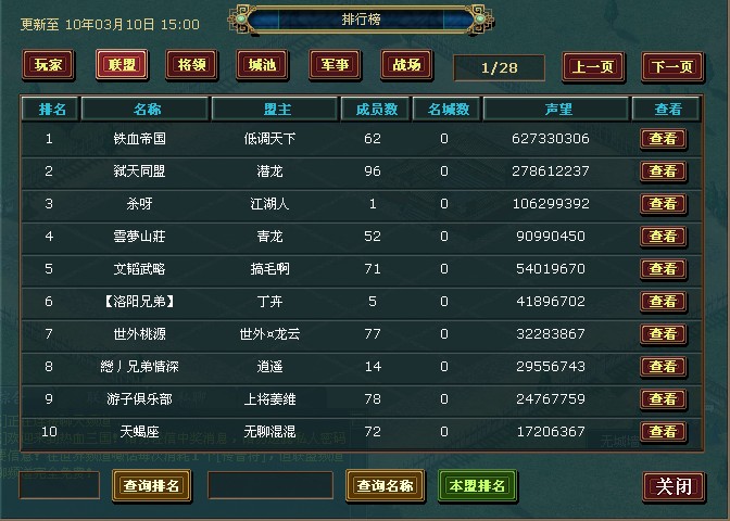 二.钢铁联盟宏图霸业(联盟排名前10):