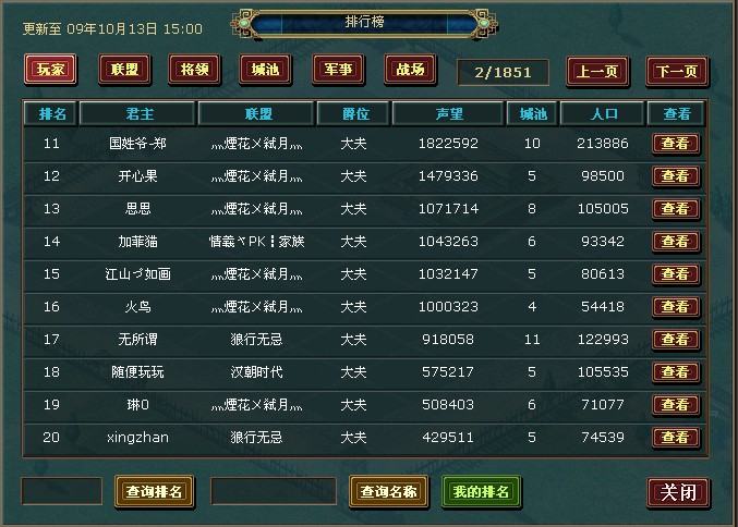 4399热血三国双线六十六服如日中天“新服新人王活动”已经结束,现在公布获奖名单,奖励在24小时内通过系统信件发送给获奖玩家。