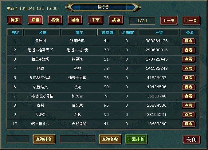 二.钢铁联盟宏图霸业(联盟排名前10):