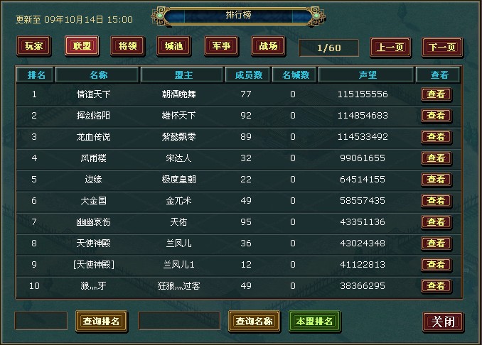 4399热血三国双线六十五服江东基业“联盟争霸”活动已经结束。现在公布获奖名单,奖励将在24小时内通过系统信件发送给获奖联盟盟主。