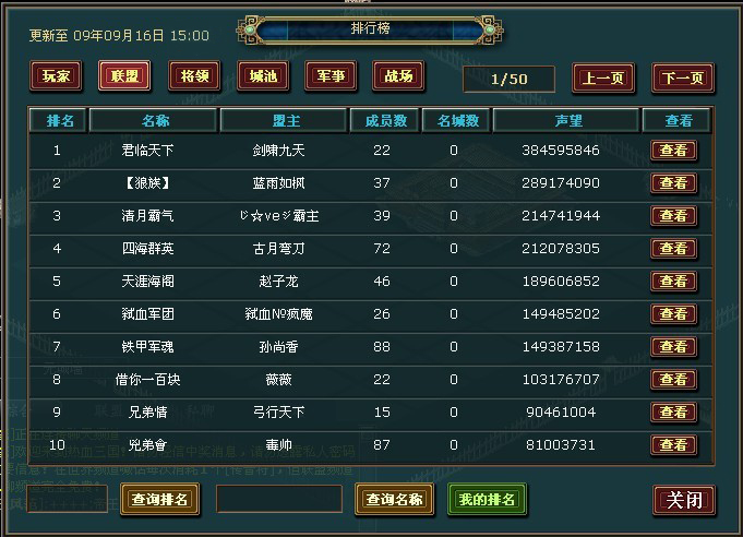 联盟名单及名次如截图: