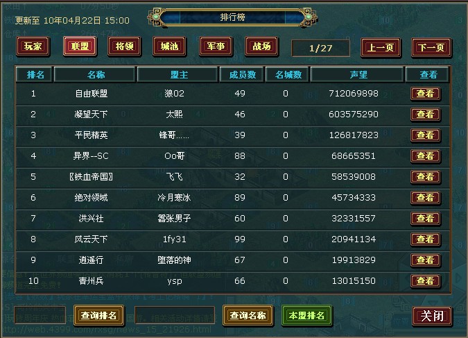 二.钢铁联盟宏图霸业(联盟排名前10):