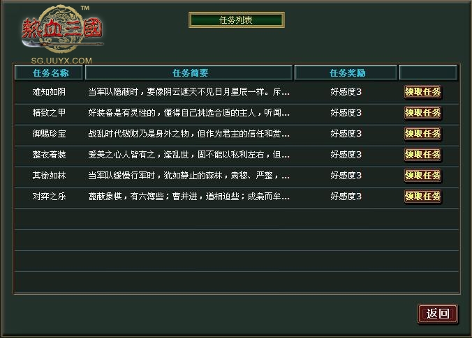 已结交的名将会出现在客栈的“结交名将”之中,防人之心名将皆有,当然初始不会立刻与你深交。玩家需通过完成名将日常发布的“公共任务”来提高与目标名将的好感度。每周每位玩家通过公共任务可以提升的好感度最高可达20点,达到这个限度后,该玩家将无法再领取到名将发布的公共任务。但须注意一点:如果玩家接受了公共任务直至第二天仍未完成,结交名将会认为这是言而无信的行为,好感度反而会降低少许。所以玩家4399要看准任务的难度量力而行,不可盲目!