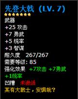 蓝色,等级80,攻击30,统率6,勇武9,智谋5 |