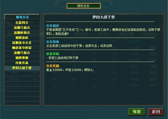 4399任务类型大体上可分两种,一种是“当日即时积累”的任务,玩家只有在接受了任务之后,才可开始完成。例如“掠夺黄巾资源”任务,玩家需在接受任务之后,掠夺到的资源才会被统计在内。另一种为“随时积累”任务,玩家可在接受任务之前,便准备好任务的相关道具,例如普通的“捐献资源”和拯救“汉室宗亲”等任务,玩家在接受任务之前的游戏积累道具也同样可以用来完成当日的任务。