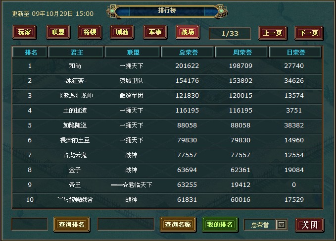 4399热血三国双线六十七服烽鼓不息“战场荣誉”已经结束,现在公布获奖名单,奖励在48小时内通过系统信件发送给获奖玩家。