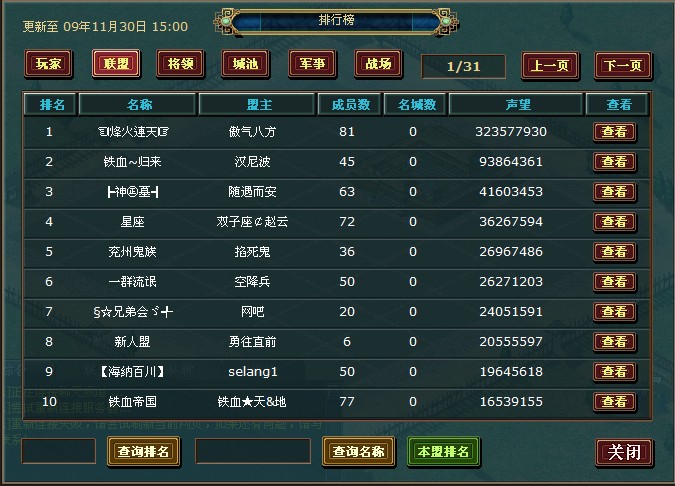 二.钢铁联盟宏图霸业(联盟排名前10):