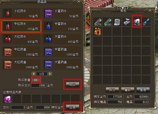 3、买卖物品:与功能NPC对话,根据文字提示选择对应选项即可与NPC进行交易。根据交易面板中的相关说明完成交易。