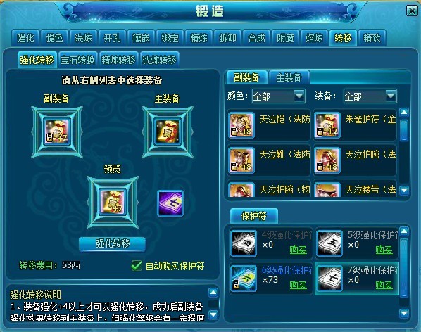 5、 应广大玩家要求,优化了战旗护符强化转移,在锻造界面的转移分页中加入了战旗和护符的强化转移。