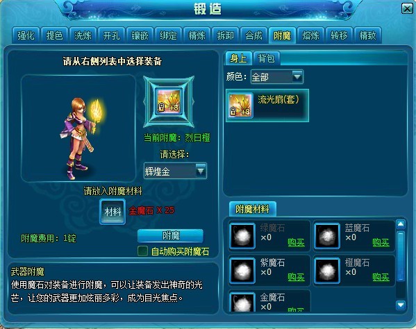 4、 增加了橙色金色附魔功能,可在锻造界面的附魔中对武器进行橙色和金色的附魔,武器光效更炫更酷。