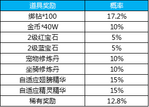 累计消费50000钻 | 称号-永恒战神,自选坐骑*1,源圣石*1,自适应寻宝钥匙*10,神圣之灵 |