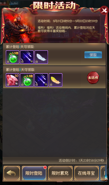 活动简介:福利!福利!活动期间内,累计登陆对应天数可获得丰富奖励哦~