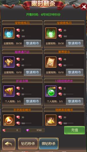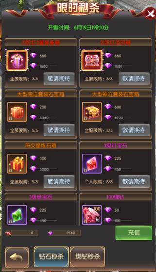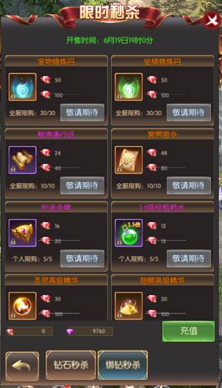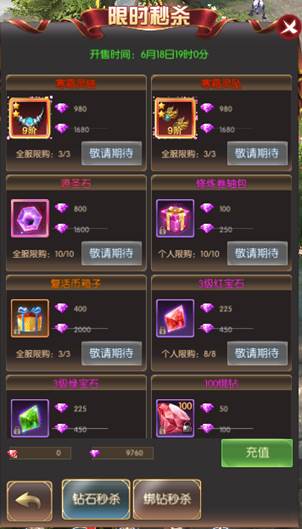 活动简介:活动期间,玩家能以超低的价格秒杀原价道具,机会不容错过。