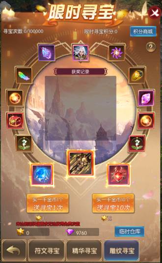 活动简介:进行寻宝即可获得丰厚奖励;限时寻宝时获得的积分,可在限时寻宝积分商城兑换珍稀道具,仅在限时寻宝开启时可使用,本次开启未用完的积分会保持到下次开启依旧可以使用
