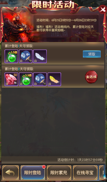 活动简介:福利!福利!活动期间内,累计登陆对应天数可获得丰富奖励哦~
