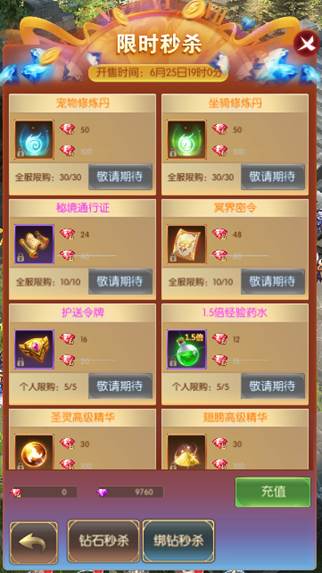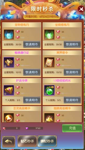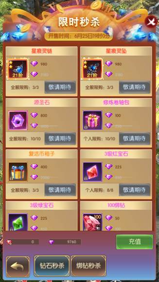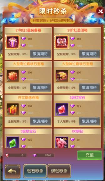 活动简介:活动期间,玩家能以超低的价格秒杀原价道具,机会不容错过。
