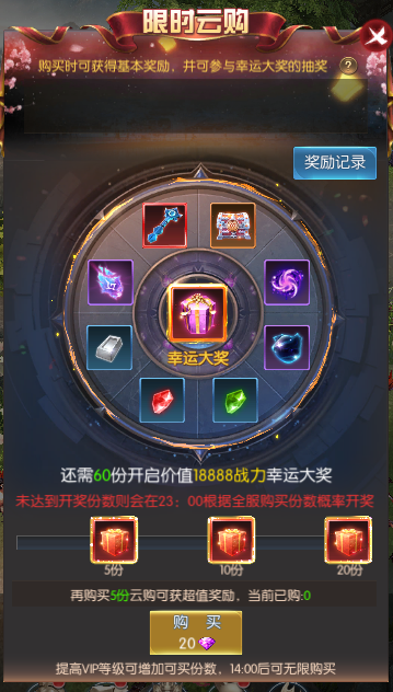 5.玩家购买到达5,10,20份之后会获得超值的阶段性奖励