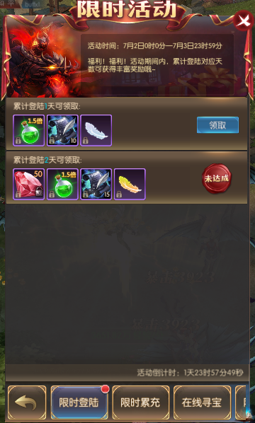 活动简介:福利!福利!活动期间内,累计登陆对应天数可获得丰富奖励哦~