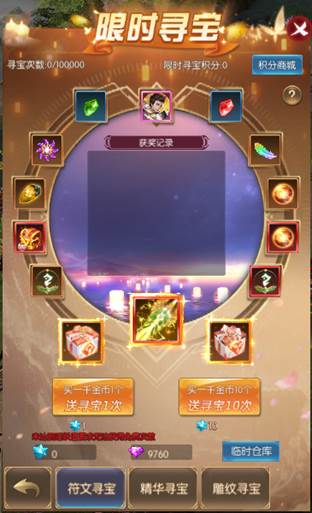 活动简介:进行寻宝即可获得丰厚奖励;限时寻宝时获得的积分,可在限时寻宝积分商城兑换珍稀道具,仅在限时寻宝开启时可使用,本次开启未用完的积分会保持到下次开启依旧可以使用