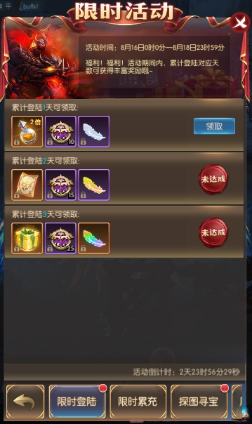 活动简介:福利!福利!活动期间内,累计登陆对应天数可获得丰富奖励哦~