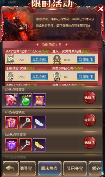 活动简介:完成指定条件,即可获得热点和丰厚奖励!