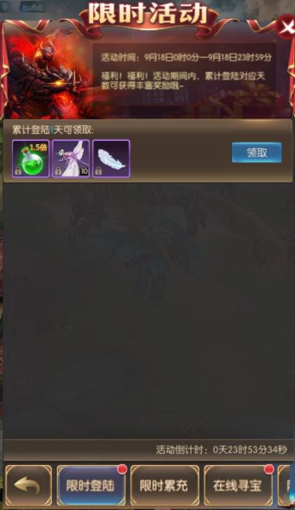 活动简介:福利!福利!活动期间内,累计登陆对应天数可获得丰富奖励哦~