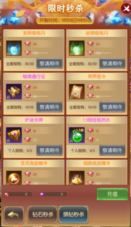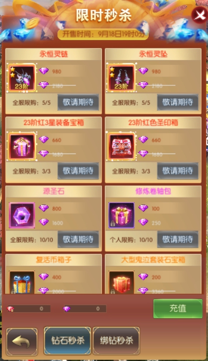 活动简介:活动期间,玩家能以超低的价格秒杀原价道具,机会不容错过。