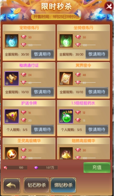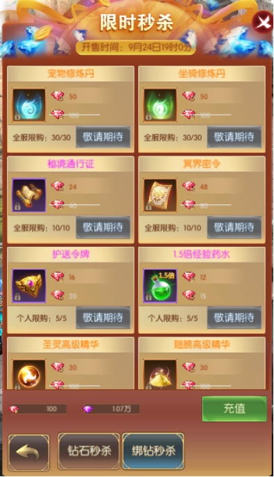 坐骑修炼丹 | 全服限30,个人5 | 50 | 100 |