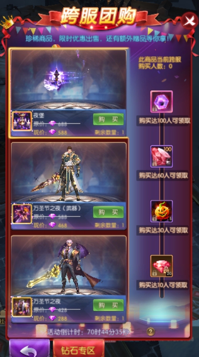1.商品有对应额外奖励,参与购买对应商品且满足对应所需购买人数方可领取额外奖励;