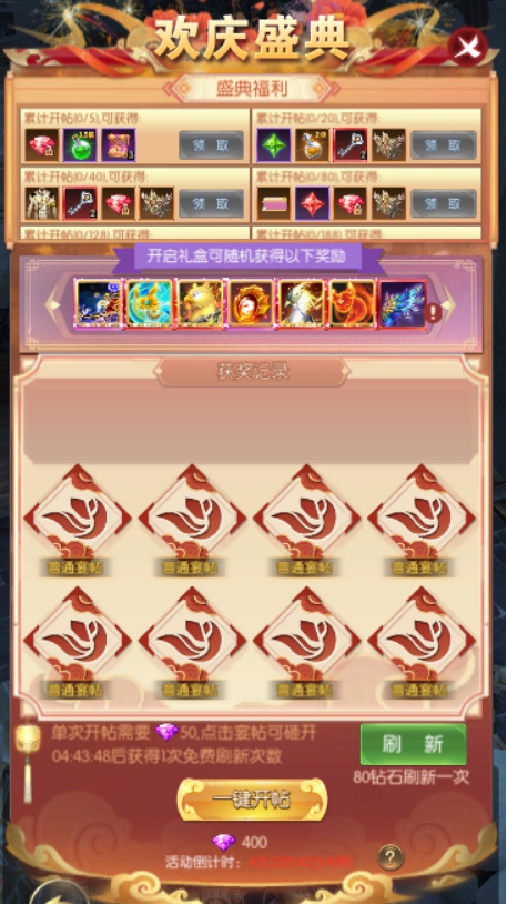 3.普通与高级宴帖有开出极品大奖,特级宴帖砸开必得极品奖励