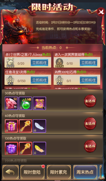活动简介:完成指定条件,即可获得热点和丰厚奖励!