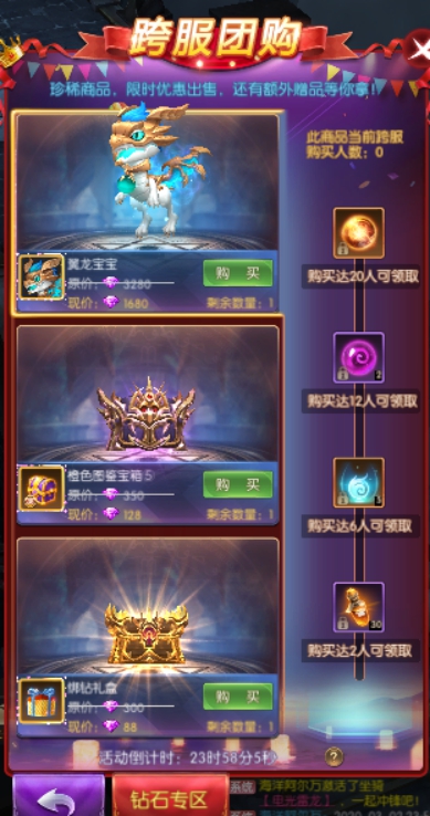 1.商品有对应额外奖励,参与购买对应商品且满足对应所需购买人数方可领取额外奖励;