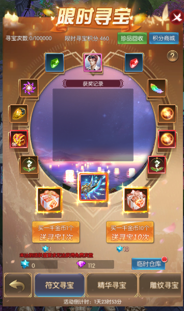 活动简介:进行寻宝即可获得丰厚奖励;限时寻宝时获得的积分,可在限时寻宝积分商城兑换珍稀道具,仅在限时寻宝开启时可使用,本次开启未用完的积分会保持到下次开启依旧可以使用